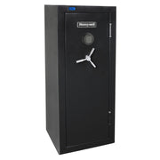 The Honeywell Model 3014D Fire Resistant Executive Gun Safe includes ETL rated fire protection safety and is capable of withstanding temperatures of 1400 degrees for a prolonged 30 mins. This safe also features a temperature and humidity gauge that actively monitors the interior conditions of your safe with an external LCD. A 3 to 8 digit programmable digital lock along with two emergency access keys has also been implemented.