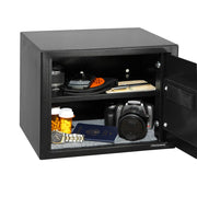 The Honeywell 5103 Steel Security Safe features a storage capacity of .83 cubic feet. This unit is particular in that it features an abundance of versatile and convenient options that bolster its effectiveness. A programmable digital lock assisted by motorized door locks assures users a personal and private method of accessing their items. Surrounded by steel, this safe is incredibly durable and particularly efficient in preventing criminal activity. Further distancing it from similar safes, the 5103 utilizes a recessed door, concealed hinges, and a rear panel to prevent unwarranted tampering. This product also features a wealth of versatile installation options. An included kit allows you to select a shelf or a position on the floor to bolt and secure your safe. Honeywell has proven itself as an invaluable and dependable brand that successfully blends flexible options with resilient technology.
